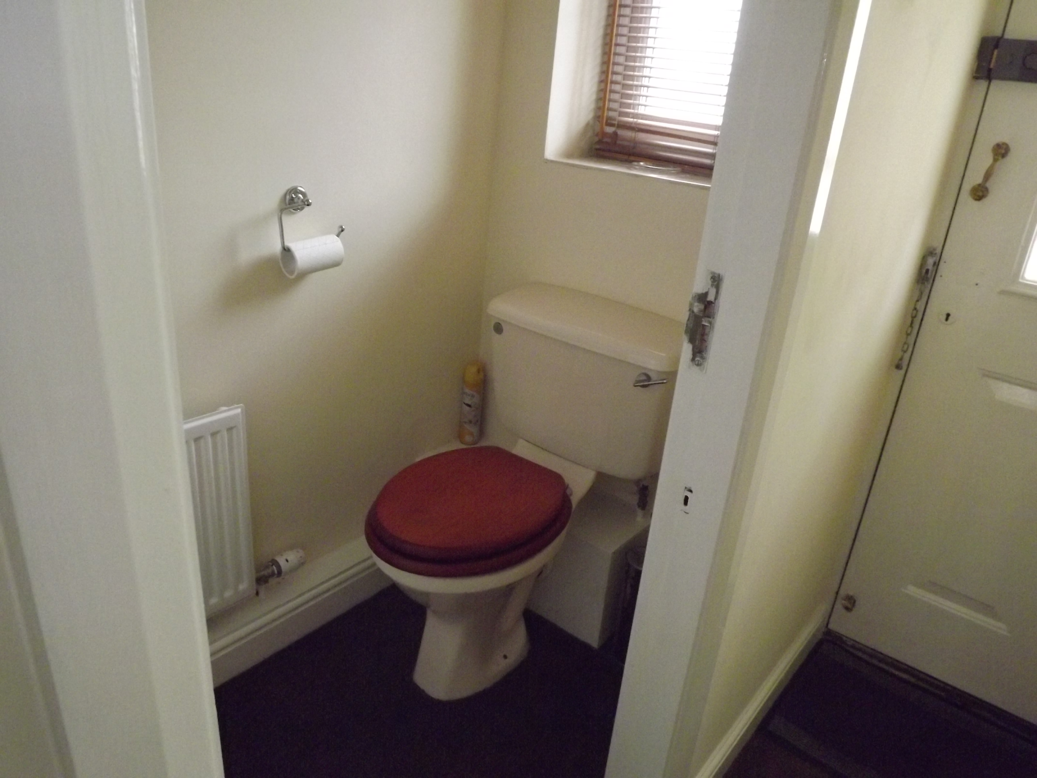 DOWNSTAIRS CLOAKS/W.C, Two piece suite in Soft Peach with Chrome fittings incorporating, low level w.c, vanity wash hand basin, double glazed window to front.