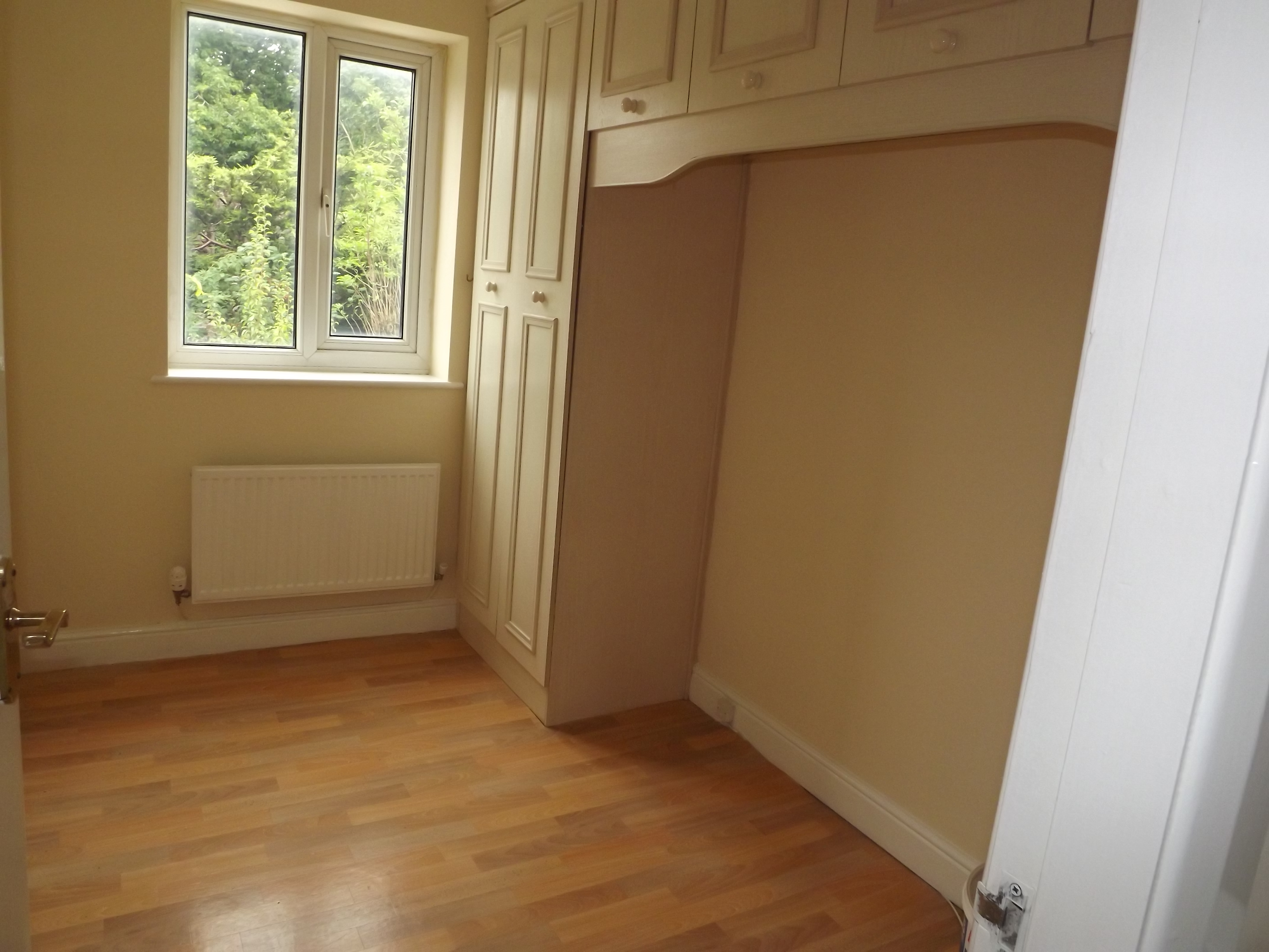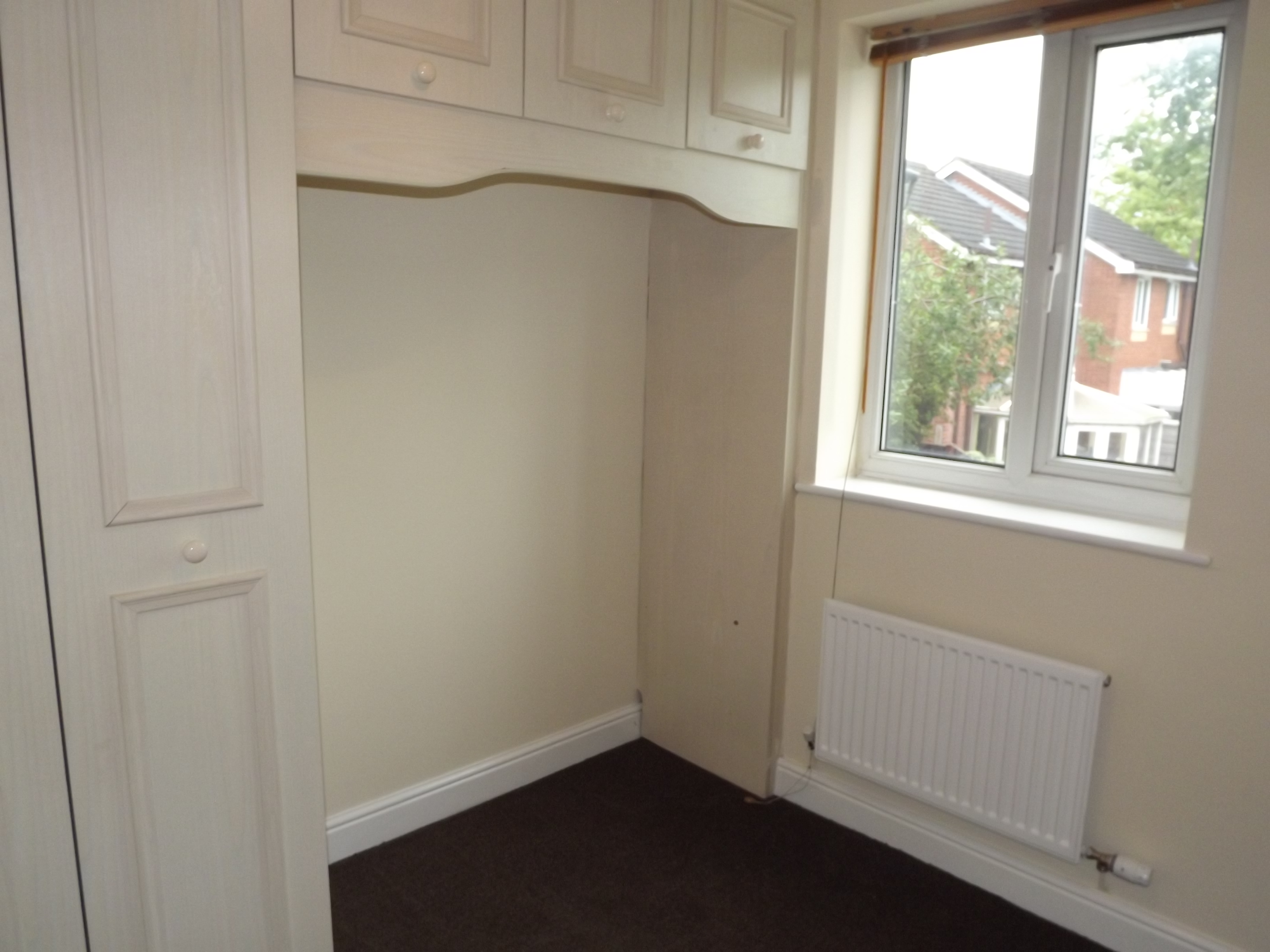 BEDROOM 3. 9’5” X 8’3” APPROX. Fitted wardrobes in Light wood, recess for bed, top storage, central heating radiator, double glazed window to rear.