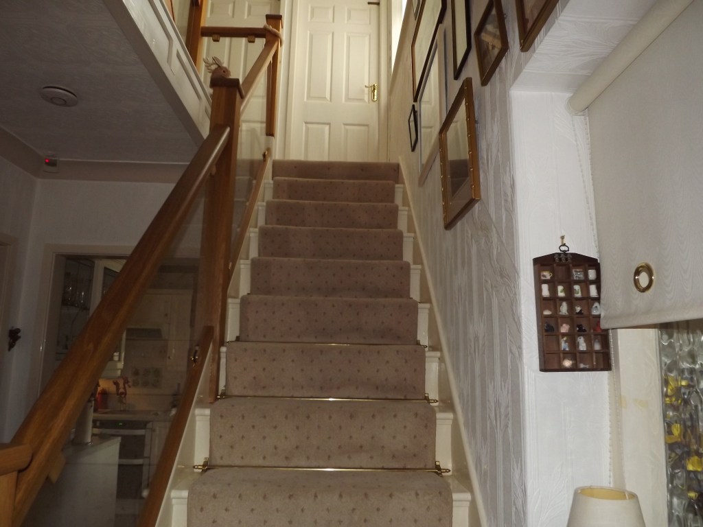 STAIRS/LANDING. Coved ceiling, spot lighting, double glazed window to front, stairs to attic room.