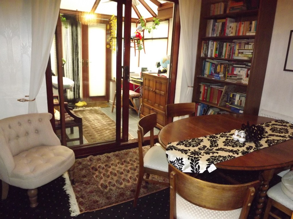 DINING ROOM. 9’11” x 9’11” APPROX. Coved ceiling, central heating radiator, double glazed patio doors to study.