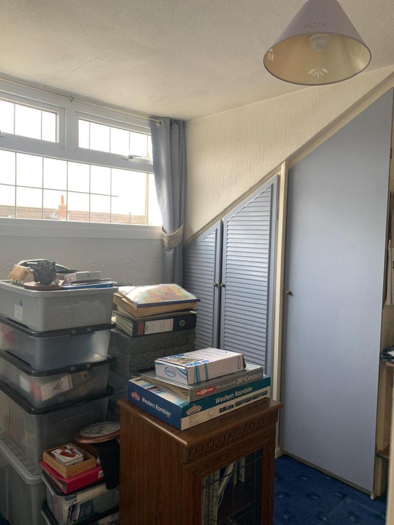 BEDROOM 3. 9’10” X 9’9″ APPROX. Fitted wardrobes in Blue, computer desk, central heating radiator, double glazed window to front.