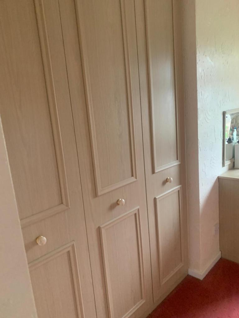 BEDROOM 1. 13’8” X 11’7” APPROX. Fitted wardrobes with recess for bed, top storage, bedside cabinets, coved ceiling, central heating radiator, double glazed window to front.